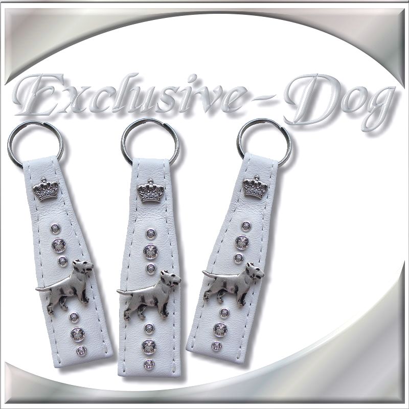 Bullterrier Schlüsselanhänger Strass Leder Krone
