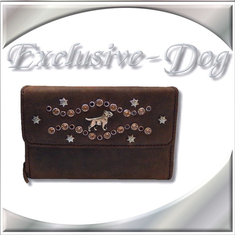 Bullterrier Geldbörse Portemonnaie mit SWAROVSKI ELEMENTS Leder Damen Strass Börse