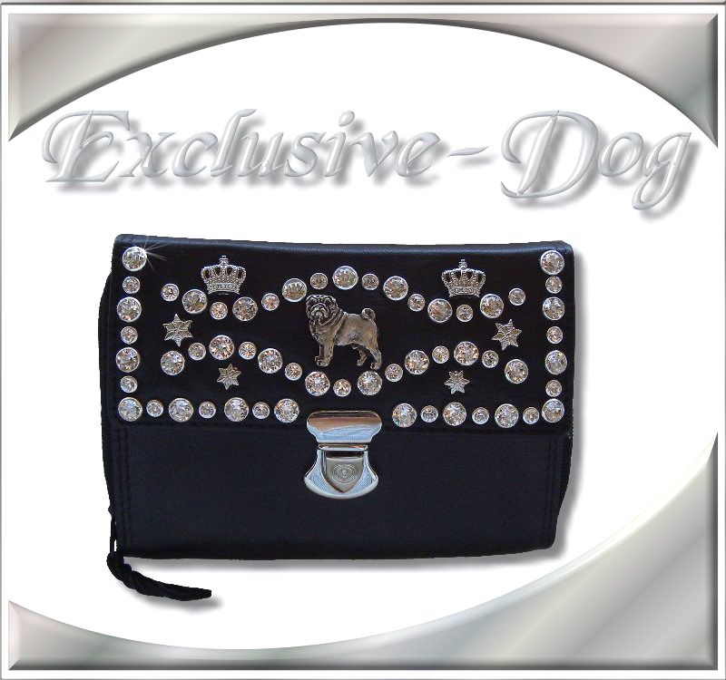 Mops Leder Damen Portemonnaie / Luxus Strass Geldbörse mit Mops Niete.