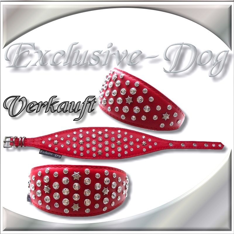 Whippet Windhundhalsbänder rot Strass Leder Halsband mit SWAROVSKI ELEMENTS für z.b. Italienisches Windspiel-Whippet-Windhund