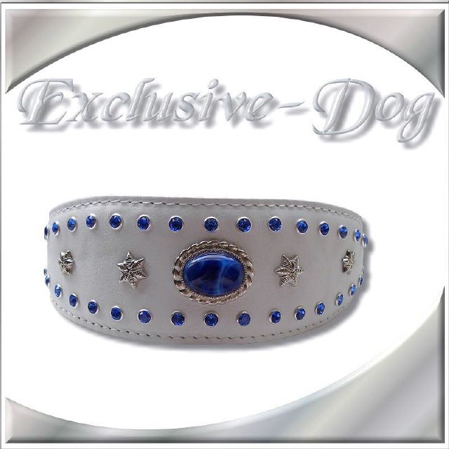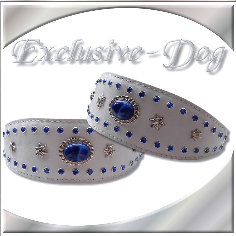 Dieses Windhund Leder-Halsband wurde aus weißen
